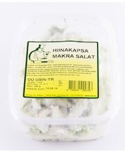 Hiinakapsas 70%, majonees (rapsiõli, vesi, suhkur, SINEPI-, VADAKU-, MUNAPULBER, paksendajad (modifitseeritud kartulitärklis, ksantaankummi), äädikas, säilitusained (naatriumbensoaat, kaaliumsorbaat), toiduvärv (beeta-karoteen)), makra 14% (vesi, kalafilee, NISU-, MAISITÄRKLIS, KRABIEKSTRAKT, SOJAVALK, suhkur, sool, rapsiõli, lõhna-ja maitsetugevdaja (naatriumvesinik glutamaat), KRABIAROOM, looduslikud toiduvärvid, karmiinhape, paprika ekstrakt), till, sool