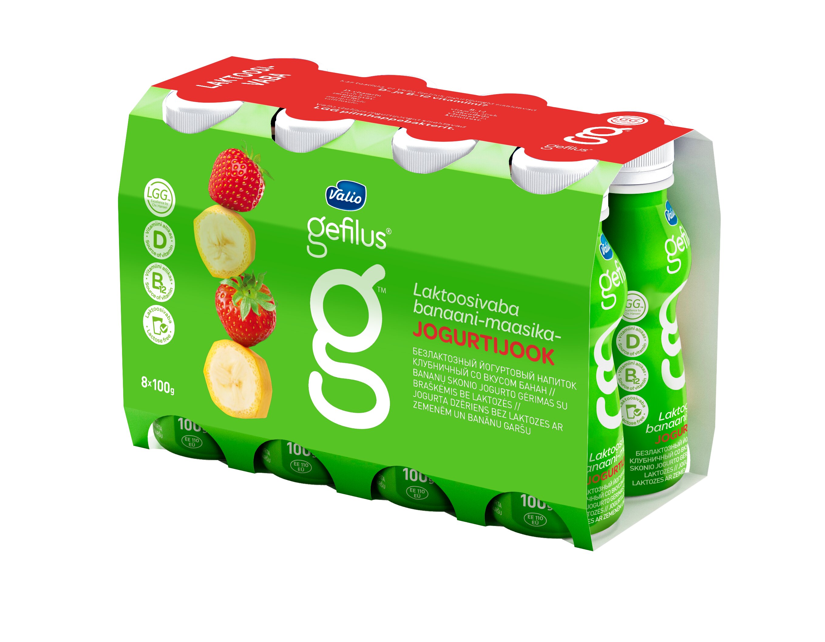 PIIM 67%, vesi, suhkur, maasikad 0,9%, banaanilõhna ja maitseaine, happesuse regulaator (sidrunhape), toiduvärv (peedipunane), juuretis, piimhappebakter Lactobacillus rhamnosus GG, D-vitamiin, B₁₂-vitamiin.* Toote koostisosade loetelu võib muutuda. Kontrollige enne toote tarbimist pakendil esitatud koostisosi.
