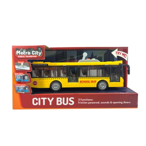 Buss Metro City 1:16 häälte ja tuledega, inertsiga värv ja kujundus võivad erineda