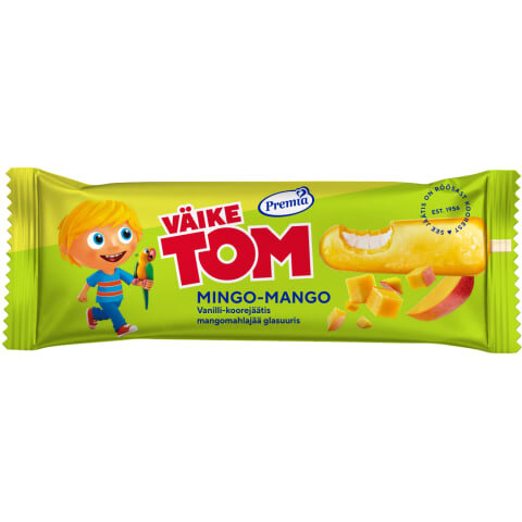 vanilli-KOOREjäätis 55% (vesi, RÕÕSK KOOR, suhkur, VÕIPIIMApulber, VÕI, emulgaator rasvhapete mono- ja diglütseriidid, stabilisaatorid: jaanileivapuujahu, guarkummi, karrageen; lõhna- ja maitseaine (vanill)), mangomahlajää 45% (vesi, suhkur, mangopüree 10%, glükoosisiirup, dekstroos, stabilisaatorid: guarkummi, karrageen, jaanileivapuujahu, pektiin; happesuse regulaator sidrunhape, looduslik lõhna- ja maitseaine)
