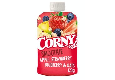 Õun (60%), maasikas (30%), mustikas (6%), kaerahelbed (4%), sidrunimahl (kontsentraadist).