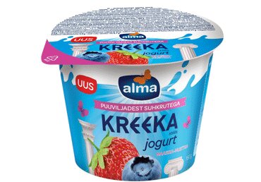 PIIM, KOOR, õunamahla kontsentraat 11,2%, maasikas 6%, mustikas 4%, modifitseeritud tärklis, lõhna- ja maitseaine, paksendaja (pektiinid), porgandi kontsentraat, happesuse regulaatorid (sidrunhape, naatriumtsitraadid), tardaine (kaltsiumtsitraadid), juuretis