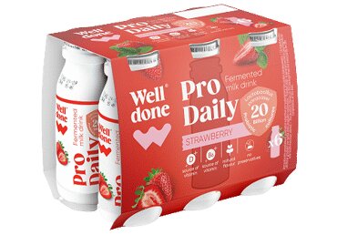 Osaliselt kooritud PIIM, piimhappebakterid (Streptococcus thermophilus, Lactobacillus bulgaricus, Lactobacillus paracasei), suhkur, maasikad 7,2%, modifitseeritud maisitärklis, looduslikud lõhna- ja maitseained, peedimahl, vitamiin B6, vitamiin D, sidrunimahl.