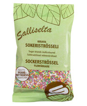 suhkur, glükoosisiirup, taimne rasv (palm), toiduvärvid (E100, E120, E131, E132, E160a, E172) (0,1%), emulgaator (päevalilleletsitiin) (0,1%), paakumisvastane aine (talk) (< 0,1%), paksendaja (kummiaraabik) (< 0,1%), vanilliin (< 0,1%).