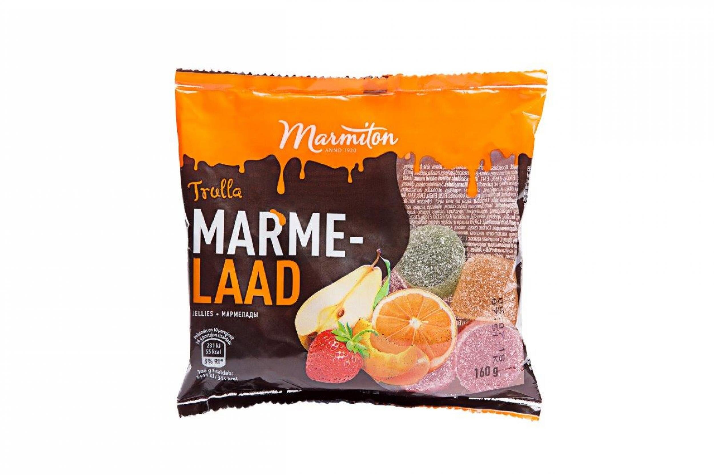 suhkur, glükoosisiirup, vesi, želeeriv aine karrageen, happesuse regulaator sidrunhape, lõhna- ja maitseained (apelsini, maasika, pirni), toiduvärvid: E160c, E163, E141