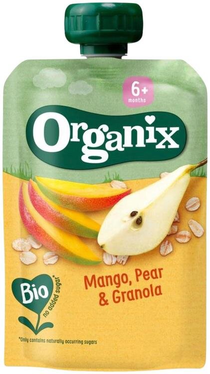 Mangopüree 48%, pirnipüree 48%, KAERAhelbepuder 4%.* Toote koostisosade loetelu võib muutuda. Kontrollige enne toote tarbimist pakendil esitatud koostisosi.