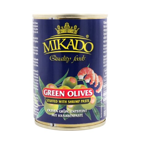vesi, oliivid, sool, KREVETIpasta 2% (vesi, KREVETI, paksendaja naatriumalginaat, KRABI maitse), maitsetugevdaja: naatriumglutamaat, happesuse regulaator: sidrunhape ja piimhape, antioksüdant: askorbiinhape