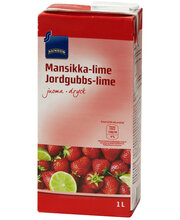 Vesi, suhkur, maasikamahla kontsentraat (maasikas: eu), laimimahla kontsentraat (laim: Brasiilia), lõhna- ja maitseained, happesuse regulaator (E330), värvus (E163), antioksüdant (E300).
