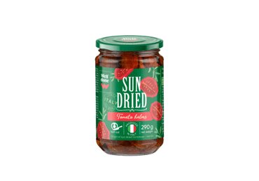 osaliselt hüdreeritud päikesekuivatatud tomatid 50,4%, päevalilleõli 46,6%, sool, happesuse regulaatorid: piimhape, sidrunhape; suhkur, pune, ekstra neitsioliiviõli, must pipar, küüslaugupulber, kõvendi: kaltsiumkloriid; aroom.
