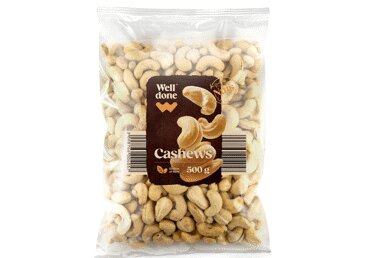 India pähklid. Võib sisaldada vähesel määral MAAPÄHKLEID, muid PÄHKLEID.