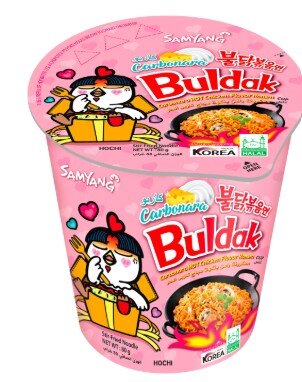 Nuudlid (71,9%): NISUjahu , modifitseeritud tapiokitärklis, rafineeritud palmiõli, modifitseeritud kartulitärklis, NISUgluteen , rafineeritud sool, emulgaator [letsitiin [E322(ii)], sibulaekstrakt, happesuse regulaator (veevaba kaaliumkarbonaat (E501(i)), naatriumkarbonaat (E500), dinaatriumfosfaat [E339(ii)], sidrunhape (E330)], paksendaja [guarkummi (E412)], rohelise tee lõhna- ja maitseõli. Kaste (16,2%): vesi, kunstlik kana maitsepulber, SOJAkaste , valge suhkur, punase paprika pulber, tšillipipra pulber, SOJAõli , sibul, punase paprika seemneõli, küüslauk, modifitseeritud kartulitärklis, paprikaekstrakt, värvitu tšilliekstrakt, musta pipra pulber, karripulber. Pulber (11,9%): täisPIIMApulber , PIIMApulber, valge suhkur, sool, mozzarella JUUSTUpulber , VÕIpulber , modifitseeritud kartulitärklis, petersell , piprapulber, küüslaugupulber, SOJAõli .