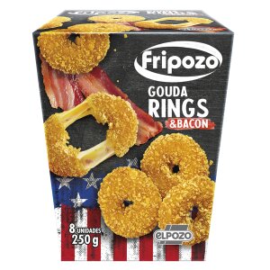 GOUDA JUUST 36%, riivsai (NISUJAHU, maisijahu, vesi, sool, dekstroos, pärm), vesi, peekonivorst 8% (sealiha 50%, vesi, sool, kartulitärklis, suhkur, suitsu lõhna- ja maitseaine, stabilisaator (trifosfaadid), antioksüdandid (naatriumerütorbaat, naatriumtsitraadid)), päevalilleõli, NISUJAHU, maisijahu, tärklis, riisijahu, modifitseeritud tärklis, kergitusained (difosfaadid, naatriumkarbonaadid), sool, modifitseeritud tärklis, kergitusained (difosfaadid, naatriumkarbonaadid), praetud sibul 0,14% (sibul, NISUJAHU, palmiõli, sool), lõhna- ja maitseaine, stabilisaator (metüültselluloos), glükoosisiirup, valge pipar, must pipar, paksendajad (guarkummi, ksantaankummi). Võib sisaldada SOJA- ja SINEPIjääke.* Toote koostisosade loetelu võib muutuda. Kontrollige enne toote tarbimist pakendil esitatud koostisosi.