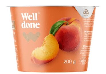 JOGURT 84% (LÕSS (päritoluriik – EL), RÕÕSK KOOR 15%, JUURETIS), suhkur, virsikud 5,6%, glükoosi- ja fruktoosisiirup, modifitseeritud maisitärklis, paksendaja pektiinid, looduslik lõhna- ja maitseaine, happesuse regulaatorid: sidrunhape, naatriumtsitraadid.