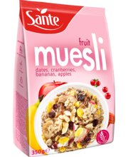 Kuivatatud puuviljade segu 34% [datlid (datlid, riisijahu), banaanikrõpsud ( banaanid, kookosõli, roosuhkur), magustatud jõhvikad (jõhvikad, roosuhkur, päevalilleõli), kuivatatud õunad ( õunad, kontsentreeritud sidrunimahl)], täistera KAERAhelbed 30,9%, NISU, maisitangud, roosuhkur, jahud (ODRA, maisi), hüdrogeenimata palmirasv, ODRAlinnaseekstrakt, suhkruroo melass, glükoosisiirup, meresool, lõhna-ja maitseained, emulgaator : letsitiin ( SOJA). Võib sisaldada PIIMA, MAAPÄHKLEID ja teisi PÄHKLEID.