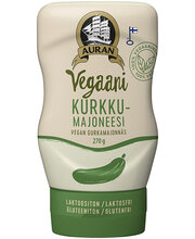 rüpsiõli, vesi, kurgisalat sinepiga (sh kurk, sibul, maisitärklis, paprika, lõhna- ja maitseained, toiduvärv (beetakaroteen)), SINEP (Auran Sinappi) (sh SINEPISEEMNED, maitseaineekstrakt (kollajuur)), suhkur, äädikas, modifitseeritud tärklis, sool, happesuse regulaatorid (piimhape, naatriumkarbonaat, sidrunhape), paksendajad (ksantaankummi, guarkummi), säilitusained (E202, E211).