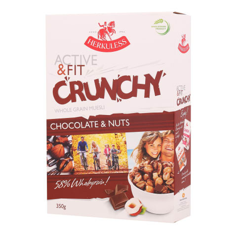 TÄISTERAKAERAHELBED (52%), suhkur, taimeõli (hüdrogeenimata), TÄISTERANISUHELBED (5%), NISUJAHU, glükoosi-fruktoosisiirup, kakaomass, purustatud SARAPUUPÄHKLID, kakaovõi, vähese rasvasisaldusega kakaopulber, TÄISTERAKAERAJAHU (1%), iirisesiirup (0,5%), invertsuhkrusiirup, ODRALINNASEEKSTRAKT, söögisool, emulgaator: SOJALETSITIIN, lõhnaine (sisaldab piima)