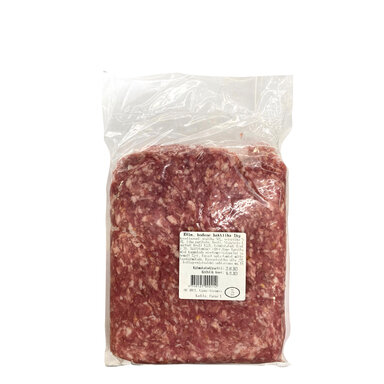 Veiseliha 50%, sealiha 50%. Päritolu: Eesti. Rasvasisalduse protsent alla 20. Kollageeni/lihavalgu suhtarv alla 15. Enne tarvitamist kuumutada toode sisetemperatuurini vähemalt 71°C. Pärast sulatamist mitte uuesti külmutada