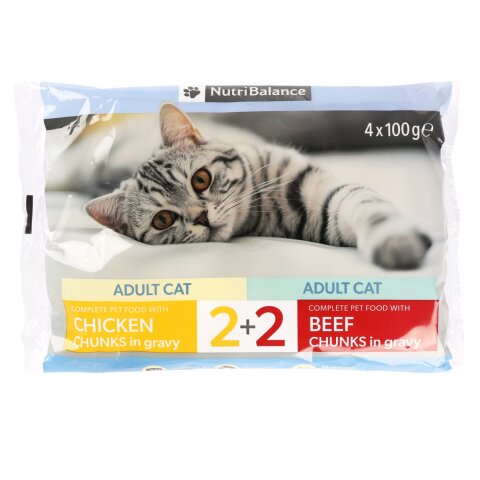 Täissööt kassidele Nutribalance kanalihaga, veiselihaga 4x100g