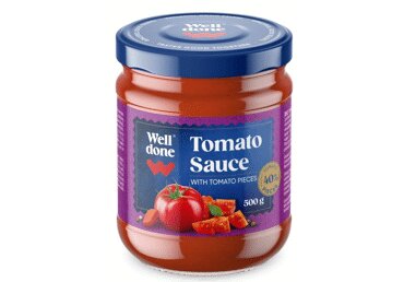 Vesi, tomatitükid 40% (päritoluriik – EL), tomatipasta 26% (päritoluriik – EL) (100 g tomatipastat on valmistatud 550 g tomatitest), suhkur, jodeeritud sool, piirituseäädikas, tärklis, veiniäädikas, sidrunimahla kontsentraat
