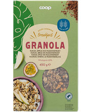 Coop granola külmkuivatatud õuna- ja passionitükkidega 1,5% ja kakaoga1% 450g