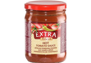 Vesi, suhkur, tomatipasta 14% (päritoluriik – muu kui EL), modifitseeritud maisitärklis, sool, happesuse regulaator äädikhape, looduslik lõhna- ja maitseaine, Cayenne'i pipar 0,07%, vürtsid.