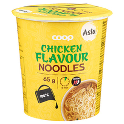 Kiirnuudlid(86%) ja maitseainesegu kanamaitse (8,5%), maitseõli jatšilliga 65g