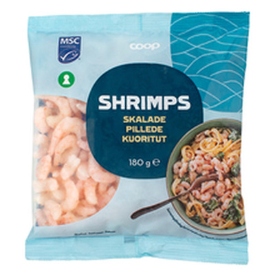 Coop külmveekrevetid keedetud ja kooritud, sügavkülmutatud, 180g