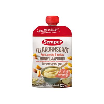 Fruktmums puuviljapüree virsiku, õuna, banaani 6+, SEMPER, 110 g