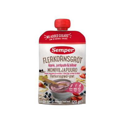 Fruktmums puuviljapüree õuna, vaarika, banaani 6+, SEMPER, 110 g