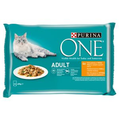 Kiisueine täiskasvanud steriliseeritud kassidele kana ja roheliste hernestega, PURINA ONE, 4x85 g
