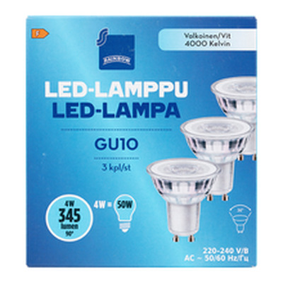 LED-lamp Gu10 3,6W 4000K 350LM, 3 tk