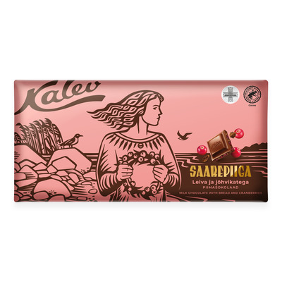 Saarepiiga piimašokolaad leiva ja jõhvikatega, KALEV, 270 g